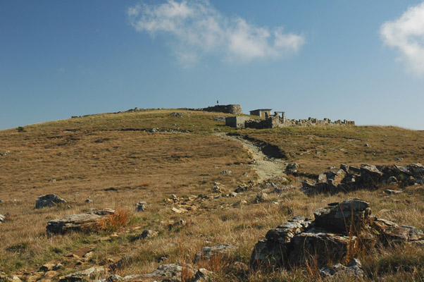 Stura di Ovada) La sommità del monte Penello come appare dal sentiero per la punta Martin. Oltre ad alcuni ruderi, si distingue una piccola costruzione dal tetto piatto: si tratta del bivacco Monte Penello: sulla cima è presente un secondo bivacco (Zucchelli), non visibile nell'immagine. di Claudio Trova |