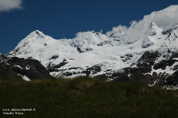 di Luseney (m. 3304), che mostra il suo versante nord occupato da un