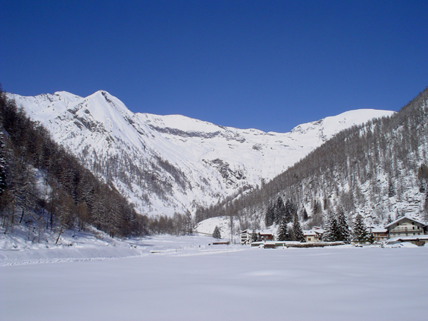 di fondo di PIAMPRATO SOANA valle Soana Il borgo di Piamprato ed il vallone risalito dalla pista di fondo. di Claudio Trova |