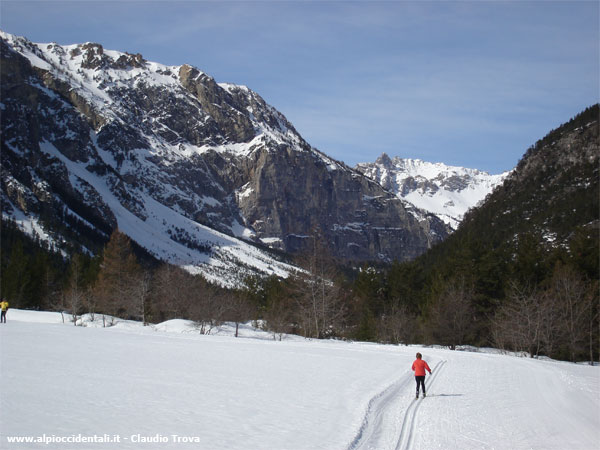 Un tratto dell'anello "rosso" sullo sfondo dell'imbocco della valle Stretta.