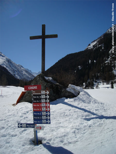 Piste di fondo di COGNE (Valle di Cogne) Segnaletica sulle piste di fondo di Cogne, nel cuore del Prato di Sant'Orso.