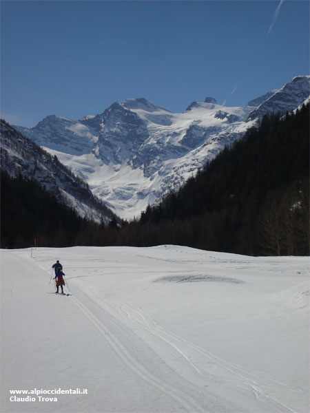 con il grandioso sfondo della Testa di Valnontey (m. 3562, al centro).