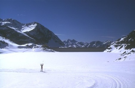 sci alpino, si raggiunge dapprima una solitaria baita (Alpe del Lago, m.