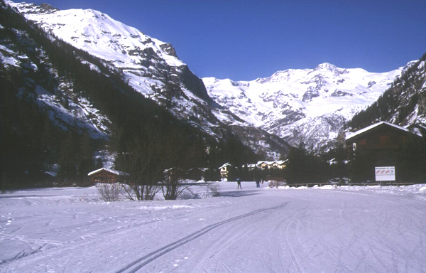 di fondo di GRESSONEY SAINT JEAN Valle di Gressoney La pista nei pressi del capoluogo, sullo sfondo del Monte Rosa: al centro, il Liskamm. di Claudio Trova |