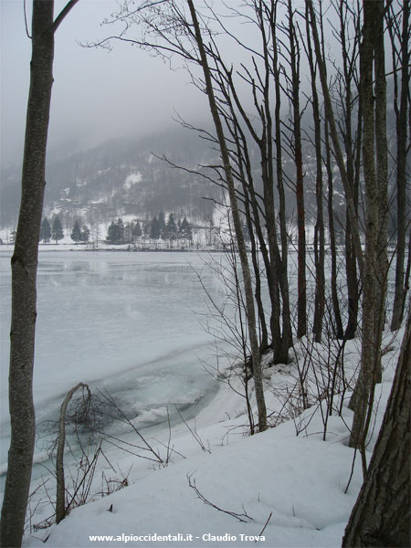 di fondo di Il tracciato percorre sia la riva destra, sia la riva sinistra dello specchio d'acqua: proprio da quest'ultima è stata scattata l'immagine a fianco, mentre sul lato opposto del lago (gelato) si nota la parte iniziale della pista, in destra idrografica.