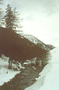 di fondo di SAINT OYEN ETROUBLES (Valle del Gran San Bernardo) La pista (visibile a destra) sale da Etroubles verso Saint Oyen. di Claudio Trova |
